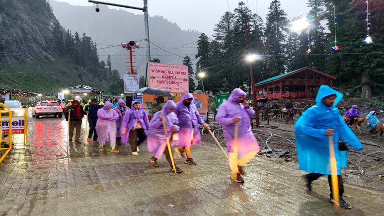 भारी बारिश के चलते अमरनाथ यात्रा अस्थायी रूप से रोकी गई.