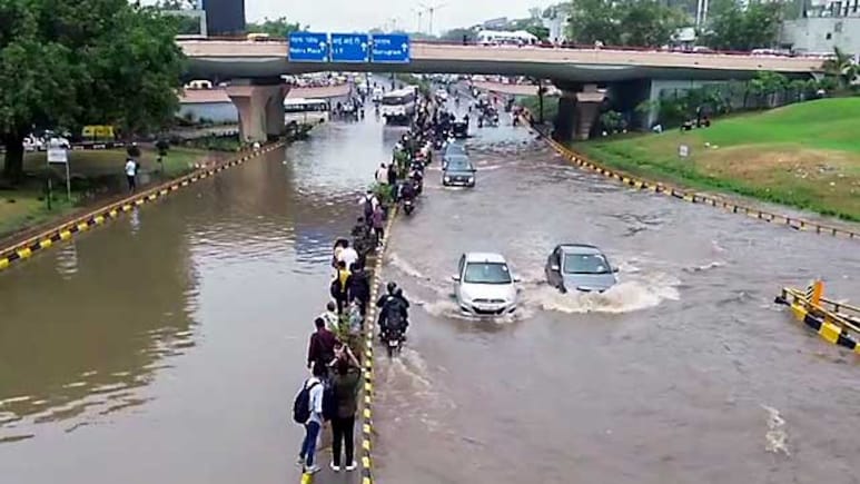 #WATCH | Delhi: Waterlogging witnessed in parts of the national capital following heavy rainfall in the area.