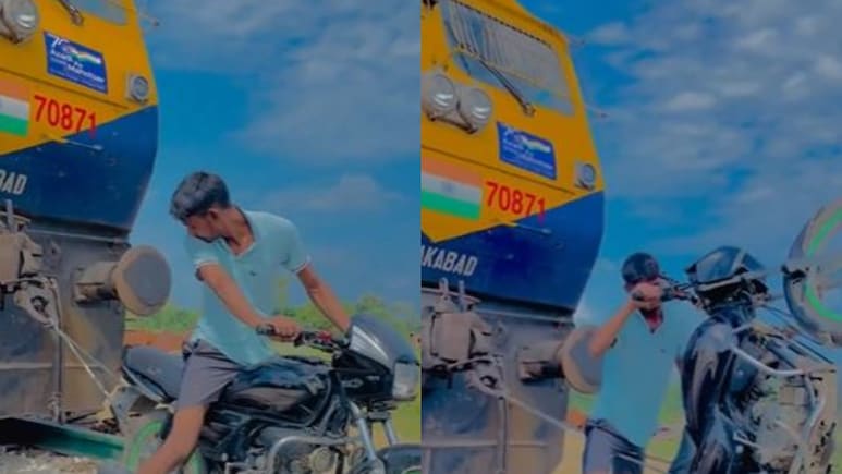 रीलबाज : बाइक से खींच रहा था ट्रेन, VIDEO वायरल हुआ तो पहुंच गया सलाखों के पीछे