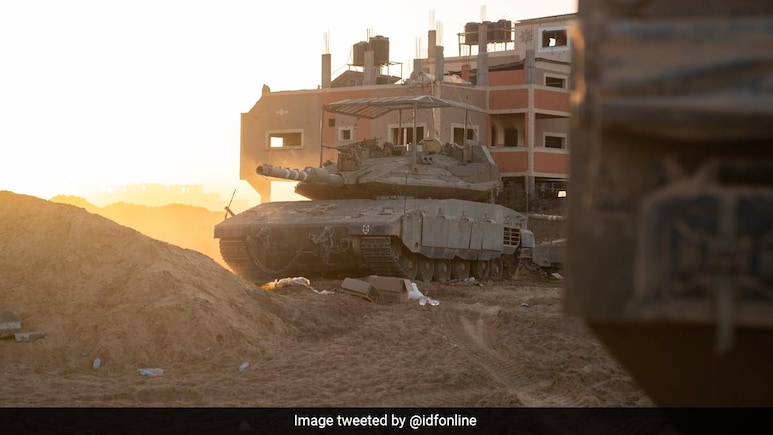गाज़ा में तैनात इजरायल का टैंक.