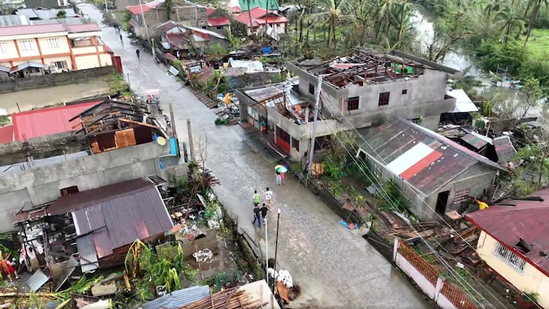 फिलीपींस के पंगानिबान में तूफान से घरों की छतों पर लगी धातु की चादरें उड़ गईं.