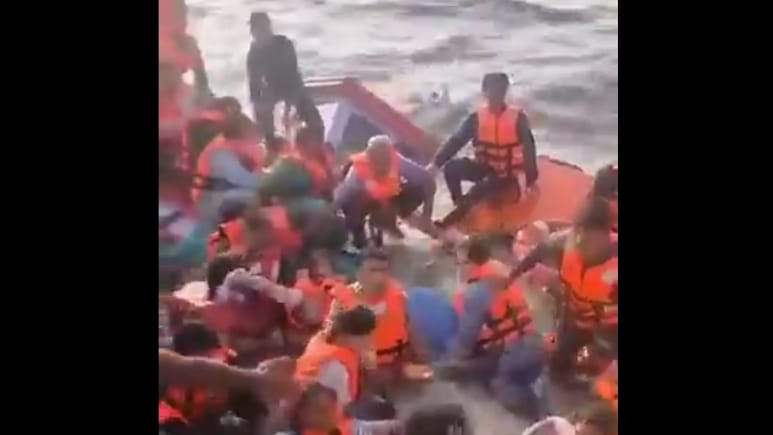 भारतीय नौसेना और तटरक्षक बल के जवानों ने मुंबई के नजदीक नौसेना की स्पीडबोट से टकराने के बाद डूबी एक बोट के यात्रियों को बचाने का एक वीडियो सामने आया है,जिसमें लोग मदद के लिए चिल्लाते हुए दिखाई दे रहे हैं और नांव धीरे-धीरे पानी के अंदर जाते हुए नजर आ रही है.