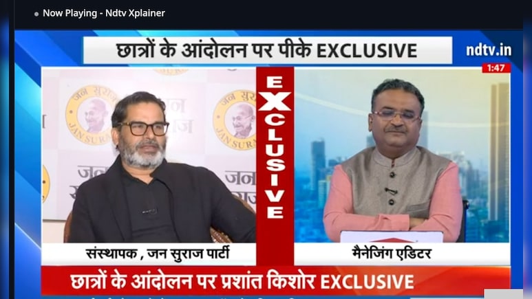 बिहार में BPSC एग्जाम (BPSC Exam Clash) पर बवाल लगातार जारी है. छात्र दोबारा परीक्षा कराए जाने की मांग पर अड़े हैं. इस बीच जन सुराज पार्टी के अध्यक्ष प्रशांत किशोर (Prashant Kishor) भी छात्रों का समर्थन कर रहे हैं. इसे लेकर वह बीजेपी के निशाने पर हैं. अब NDTV से खास बातचीत में प्रशांत किशोर ने कहा है कि वह छात्रों के सहयोग के लिए उनसे मिलने गए थे. इसमें उन्होंने क्या गुनाह कर दिया. पीके ने कहा कि पटना के जिस गांधी मैदान में पुस्तक मेला लगा है और प्रदर्शनी लगी है,अगर वहां पर 5 हजार छात्र एक कोने में बैठकर बात कर रहे हैं तो इसके लिए कौन सी परमिशन की जरूरत है.