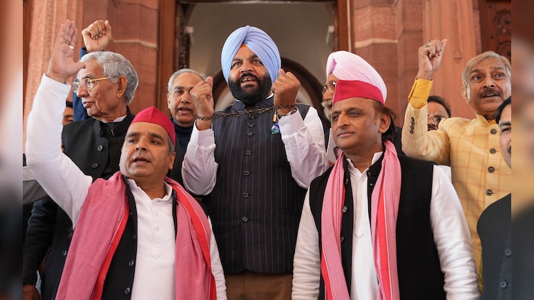 विपक्षी दलों के सांसदों ने संसद के बाहर किया विरोध प्रदर्शन.