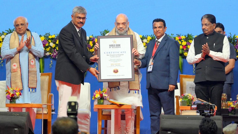 केंद्रीय गृह और सहकारिता मंत्री अमित शाह गुजरात दौरे पर हैं. यहां वो कई कार्यक्रमों में शिरकत कर रहे हैं. इसी क्रम में वो गुजरात बार काउंसिल के एक कार्यक्रम में शामिल हुए. इसमें 11 हजार से अधिक युवा अधिवक्ताओं ने न्याय व कर्त्तव्यनिष्ठा की शपथ लेकर विश्व रिकॉर्ड बनाया. गृह मंत्री ने खुद इस बारे में ट्वीट कर जानकारी दी.