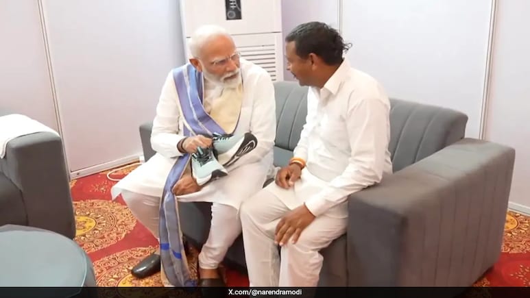इसके बाद पीएम मोदी रामपाल को जूते भेंट करते हैं और पूछते हैं कि जूता फिट आ गया? प्रधानमंत्री मोदी रामपाल कश्यप से कहते हैं कि आप जूते पहनते रहना.