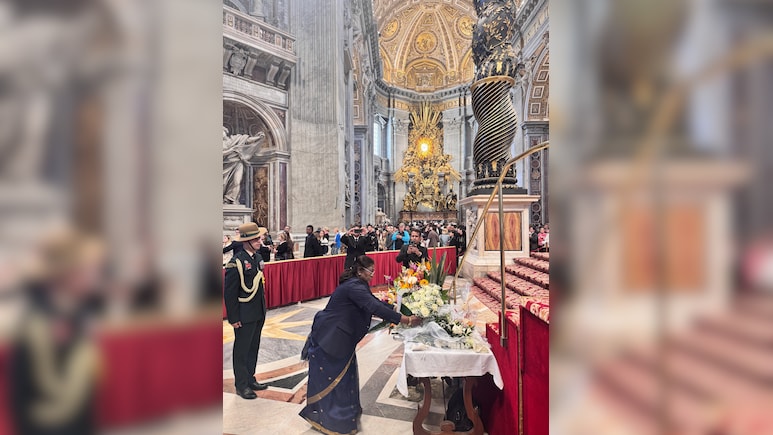 इससे पहले,राष्ट्रपति मुर्मू अल्पसंख्यक मामलों के केंद्रीय मंत्री किरेन रिजिजू के साथ पोप फ्रांसिस के राजकीय अंतिम संस्कार में भाग लेने के लिए वेटिकन सिटी पहुंचीं. प्रतिनिधिमंडल में अल्पसंख्यक मामलों के राज्य मंत्री जॉर्ज कुरियन और गोवा विधानसभा के उपाध्यक्ष जोशुआ डी सूजा भी शामिल हैं.