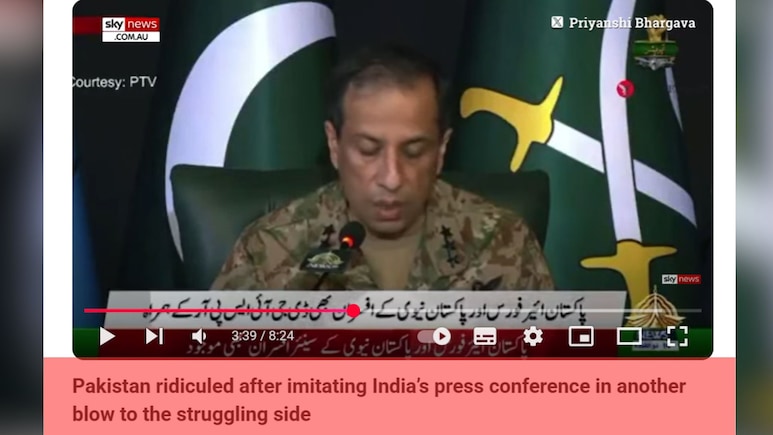 भारत ने आतंकवाद के खिलाफ अपने लक्ष्य पूरे होने के बाद पाकिस्तान के साथ भले सीजफायर पर सहमति जता दी है लेकिन पड़ोसी मुल्क की फजीहत खत्म होने का नाम नहीं ले रही है. उसके कर्म ही ऐसे हैं कि उसकी पूरी दुनिया में जगहंसाई हो रही है. अब ऑस्ट्रेलिया के मीडिया- स्काई न्यूज ऑस्ट्रेलिया ने पाकिस्तान का खूब मजाक उड़ाया. उसने यूट्यूब पर डाले अपने एक वीडियो रिपोर्ट में सीधे-सीधे कहा कि भारत की तीनों सेना के प्रेस कॉन्फ्रेंस की नकल करते हुए पाकिस्तान ने प्रेस कॉन्फ्रेंस तो कर ली लेकिन उसकी तरह सबूत और विजुअल के साथ अपने दावों को साबित नहीं कर सका.